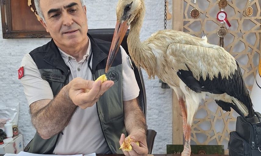 Mersin'in Anamur ilçesinde, orman yangınlarından kaçtığı değerlendirilen yaralı leylek, Orman İşletme Müdürlüğü ekiplerince koruma altına alındı.