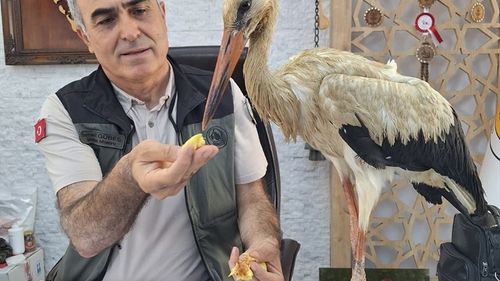 Mersin'de orman yangınlarından kaçan yaralı leylek, Orman İşletme Müdürlüğü tarafından koruma altına alındı.