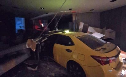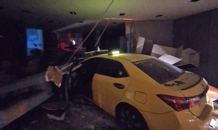 Mersin'de bir taksinin motosiklet sürücüsüne çarptıktan sonra mobilya mağazasına girmesi sonucu mağazada hasar oluştu.
