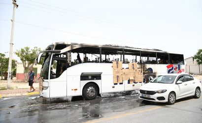 Mersin'in Toroslar ilçesinde, seyir halindeyken alev alan bir yolcu otobüsü, kullanılamaz hale geldi. Olay, Mimar Sinan Bulvarı üzerinde meydana geldi ve geriye yalnızca yangın izleri kaldı.
