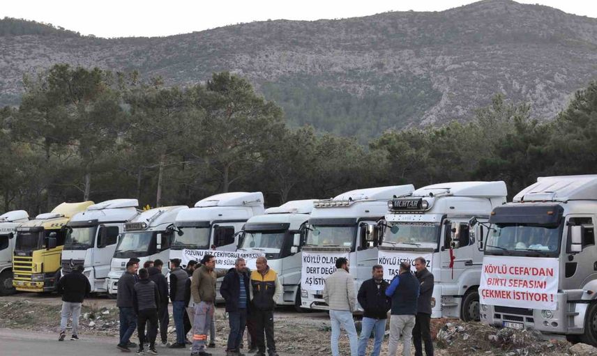 Kamyoncular, fabrikaların nakliye işlerinde yerel kooperatifler ve bölge halkı yerine dışarıdan taşeron firmaları tercih ettiğini iddia etti. Araçlarına astıkları pankartlarda "Köylü olarak çöp değil iş istiyoruz", "Tozunu biz çekiyoruz sefasını başkaları sürüyor" ve "Taşeron istemiyoruz" ifadeleri dikkat çekti.