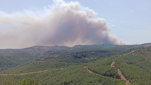 Mersin'in Silifke ilçesi Çamlıca Mahallesi'nde çıkan orman yangınına, Orman İşletme Müdürlüğü, itfaiye, söndürme helikopterleri ve arazözlerle müdahale ediliyor.
