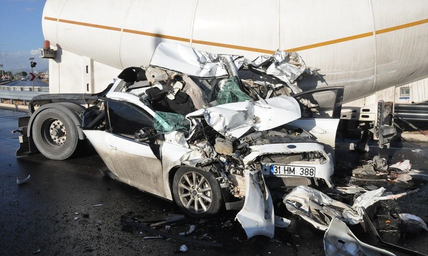 Aynı istikamette seyir eden M.U. yönetimindeki 31 HM 388 plakalı otomobil, tıra çarptı.