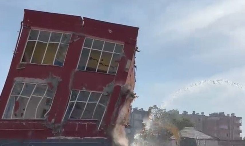 Mersin Tarsus'ta 2 Katlı Bina Titreşimle Kontrollü Yıkıldı