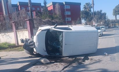 Mersin'in Tarsus ilçesinde hafif ticari aracın devrilmesi sonucu sürücü yaralandı.