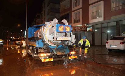 Ayrıca bölgede bir iş yerinin zemin katına yağmur suyu girişi yaşanması üzerine ekipler, yüzey sularını küreyerek tahliye işlemini tamamladı.