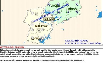 Müdürlükten yapılan açıklamada, "Bölgemiz genelinde havanın parçalı yer yer çok bulutlu, öğle saatlerinden itibaren Tunceli ve Bingöl çevreleri ile Elazığ’ın doğusunda aralıklı yağmurlu ve karla karışık yağmurlu olarak geçmesinin tahmin edildiği belirtildi. Ayrıca yüksek kesimlerin (1500 metre ve üzeri) yer yer kar yağışlı olacağı vurgulandı.
