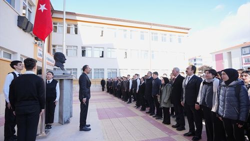 Bakan Tekin, Aksaray'da Uluırmak Lisesi'nde bayrak törenine katıldı ve öğrencilere tatil dileğinde bulundu.