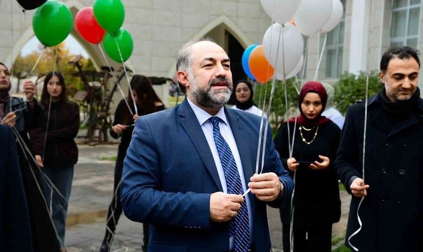 "Bugün anlamlı bir etkinlik için bir aradayız. Gençlerimizle, üniversitedeki öğrencilerimizle, tamamen onların organizasyonlarıyla yapılan bir etkinlikteyiz. Bugün Gazze’de, Filistin’de, Doğu Türkistan’da, Sudan’da ve dünyanın herhangi bir yerinde insanlık ailesinin bir parçası olan kardeşlerimiz zulüm ve soykırıma maruz kalıyor. Bu zulmü duyurmak, farkındalık oluşturmak, onları unutmadığımızı ve yanlarında olduğumuzu göstermek için buradayız. Aynı zamanda bu etkinlikle kendi bilincimize ve topluma insanlığı hatırlatmayı amaçlıyoruz. Düzenlenen etkinlikte elde edilecek gelirin kardeşlerimize ulaştırılmasını temenni ediyoruz. Bunun yanında sergimiz ve balon uçurma etkinliğimizle de mesajımızı vermek istedik. Emeği geçen tüm hocalarımıza ve özellikle bu organizasyonu gerçekleştiren öğrencilerimize teşekkür ediyorum" diye konuştu.