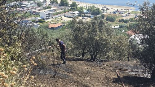 Bursa'nın Mudanya ilçesinde zeytinlikte çıkan yangın, ekiplerin hızlı müdahalesiyle söndürüldü. 8 dönüm alan zarar gördü.