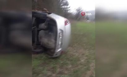 Mudurnu'da takla atan otomobil metrelerce sürüklendi