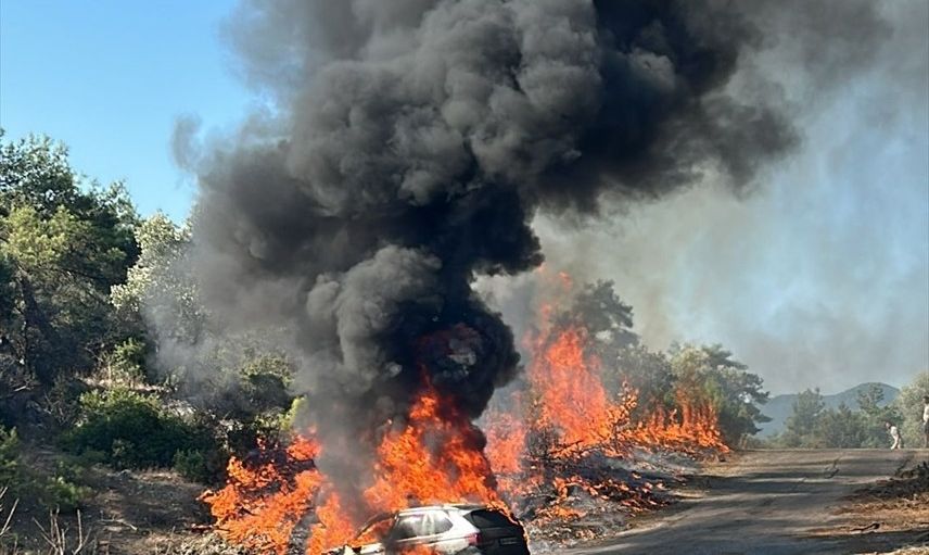 Muğla'nın Milas ilçesinde, otomobilden çıkan yangın, ormanlık alana sıçrayarak kısa süreli paniğe neden oldu.