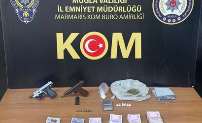 Operasyon kapsamında yapılan aramalarda bir miktar uyuşturucu, 5 sentetik ecza, 3 ruhsatsız tabanca, 88 fişek ile suçtan elde edildiği değerlendirilen 97 bin lira ve 1070 pound ele geçirildi.