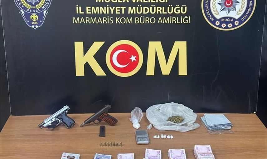 Muğla'da düzenlenen uyuşturucu operasyonunda gözaltına alınan 14 şüpheliden 12'si tutuklandı. Operasyonda bir miktar uyuşturucu, 5 sentetik ecza, 3 ruhsatsız tabanca, 88 fişek, suçtan elde edildiği değerlendirilen 97 bin lira ile 1070 pound ele geçirildi.