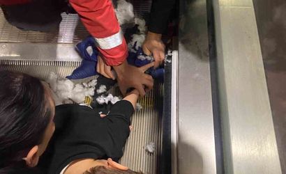 MUĞLA'NIN MENTEŞE İLÇESİNDE ALIŞVERİŞ MERKEZİNE ARKADAŞININ DOĞUM GÜNÜNÜ KUTLAMAK İÇİN GELEN 5 YAŞINDAKİ ÇOCUĞUN ELİ YÜRÜYEN MERDİVENE SIKIŞTI.
