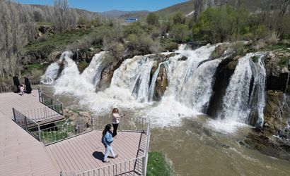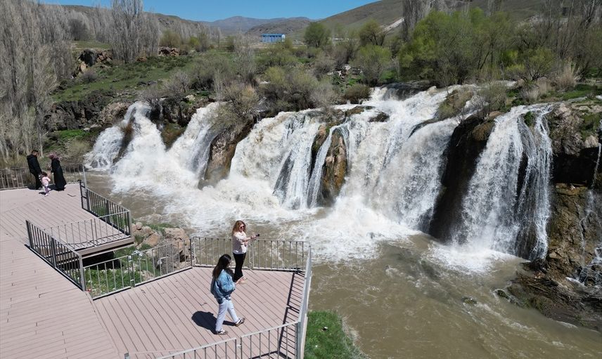 Van'da son günlerde etkili olan yağışlar, Muradiye Şelalesi'nin debisini artırdı. Daha coşkulu akan su, ziyaretçilerini adeta büyülüyor.