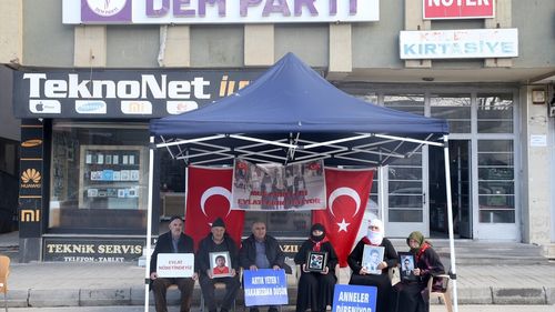 Muş'ta çocukları PKK tarafından kaçırılan aileler, DEM Parti önündeki eylemlerine devam ederek çocuklarına kavuşma umudunu sürdürüyor.