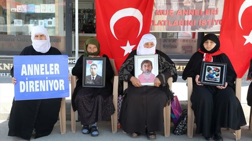 Muş'ta Aileler Evlat Nöbeti Tutuyor Muş'ta, DEM Parti İl Başkanlığı binası önünde düzenlenen eylemde, aileler terör örgütü PKK tarafından kaçırılan çocuklarına "teslim olun" çağrısında bulundu. Evlatlarına kavuşma umuduyla bir araya gelen aileler, "Anneler direniyor", "Evlat nöbetindeyiz" ve "Artık yeter yakamızdan…