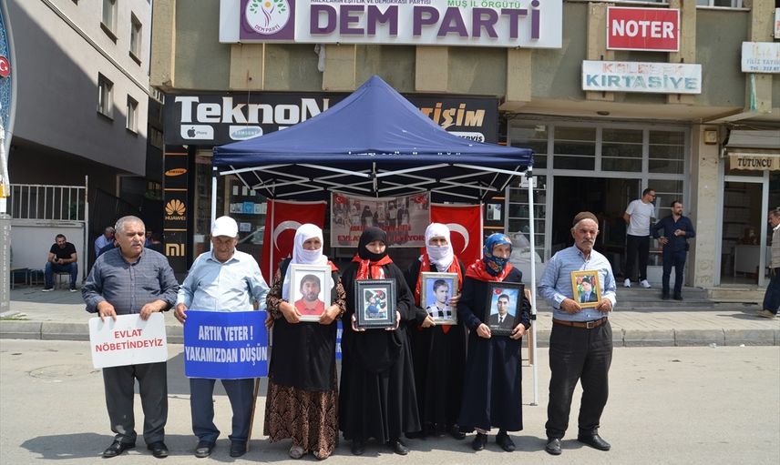 Muş'ta terör örgütü PKK tarafından dağa götürülen çocuklarını geri almak isteyen aileler, DEM Parti il başkanlığı binası önünde eylemlerine devam ediyor.