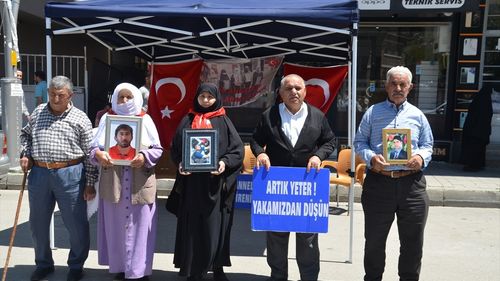 Muş'ta PKK tarafından kaçırılan çocukların aileleri, DEM Parti binası önündeki eylemlerine devam etti.