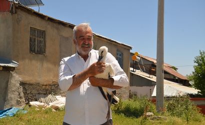 Muş'ta elektrik direğindeki yuvadan düşen leylek yavrusu tedavi altına alındı.