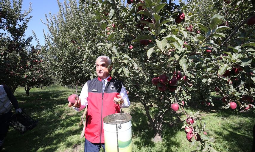 Tarım ve Orman İl Müdürlüğü tarafından düzenlenen törene katılan Muş Valisi Avni Çakır, ağaçlardan elma topladı ve işçilerle sohbet etti.