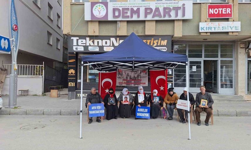 Muş’ta, çocukları PKK tarafından kaçırılan ailelerin DEM Parti İl Başkanlığı önünde başlattığı evlat nöbeti eylemi 222’nci haftasına girdi. Her hafta çarşamba günü bir araya gelen aileler, bu haftada da ellerinde pankartlarla çocuklarına seslendi.