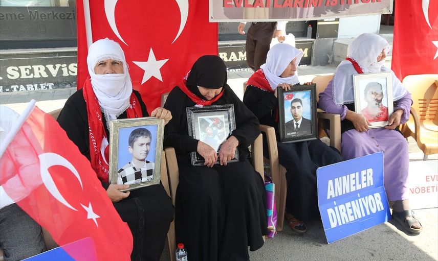 Muş'ta çocukları terör örgütü PKK tarafından kaçırılan aileler, DEM Parti İl Başkanlığı binası önündeki eylemlerine devam etti.
