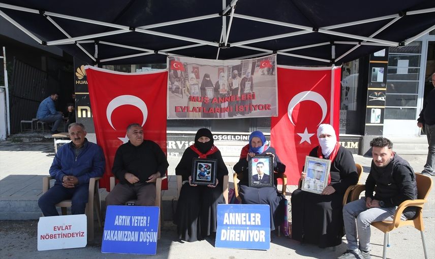 Muş'ta çocukları terör örgütü PKK tarafından kaçırılan aileler, DEM Parti İl Başkanlığı binası önündeki eylemlerine devam etti. Aileler, Her hafta çarşamba günü bir araya gelerek çocuklarının teslim alınmasını talep ediyor.