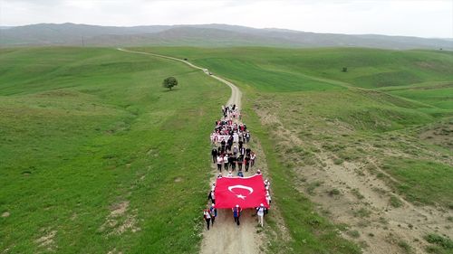 Muş'un Korkut ilçesinde düzenlenen etkinlikte gençler, Türk bayraklarıyla yürüyerek doğanın tadını çıkardı.