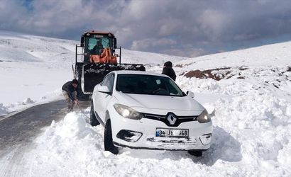 İş makinesi operatörü İdris Karakan, birçok noktada kar yağışının hala devam ettiğini belirterek, "Hasköy-Mutki kara yolunda ulaşımda aksamalar yaşanıyor. İhbar üzerine bölgeye geldiğimizde mahsur kalan araçların olduğunu gördük. 4 saatlik bir çalışmayla o araçlara geçit verdik," şeklinde konuştu.
