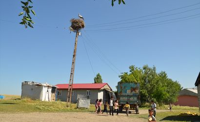 Havanın ısınmasıyla Muş'a gelen leylekler, yumurtadan çıkan yavrularını sulak alanlardan taşıdıkları yiyeceklerle büyütüyor.