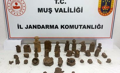 Muş'ta tarihi eser kaçakçılığı operasyonunda Demir Çağı'na ait heykel ve 42 obje ele geçirildi.