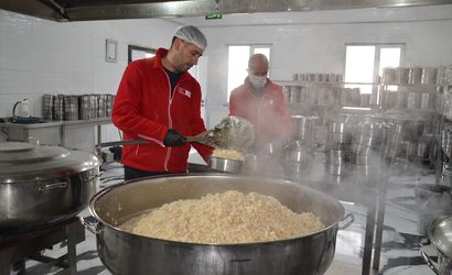 Türk Kızılay Muş Şubesi tarafından başlatılan "Kalbimiz bir, soframız bir" kampanyası kapsamında, aşevinde günlük 3 bin kişilik 3 çeşit yemek hazırlanıyor. Gıda mühendisleri tarafından kontrol edilen yemekler, sefer taslarına konularak gönüllüler aracılığıyla ihtiyaç sahiplerine ulaştırılıyor.