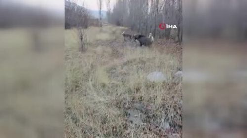 Muş'ta Yaban Domuzu ile Çoban Köpeklerinin Kovalamacası Kamerada