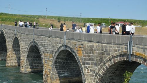 Muş'taki tarihi Murat Köprüsü, Kurban Bayramı tatilinde yerli ve yabancı ziyaretçilerin ilgi odağı oldu.
