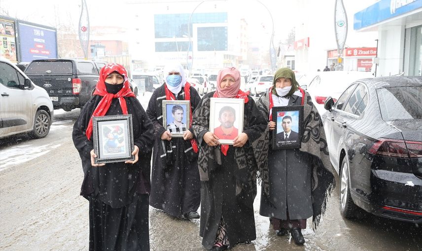 Muş'ta, terör örgütü PKK tarafından kaçırılan çocuklarının geri dönüşü için mücadele eden aileler, DEM Parti İl Başkanlığı binası önündeki eylemlerine devam ediyor.