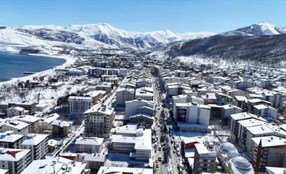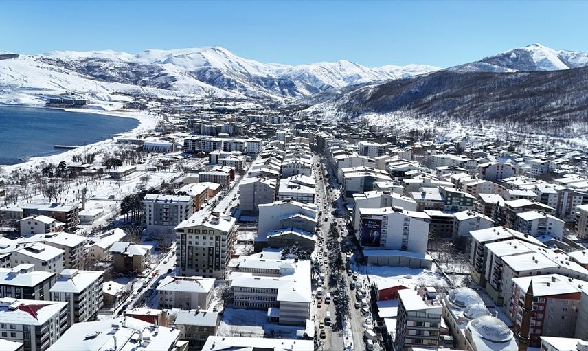 Bitlis'in Tatvan ilçesinde etkisini sürdüren soğuk hava nedeniyle çatılarda buz sarkıtları oluştu. Kar yağışıyla beyaz örtüyle kaplanan ilçenin Van Gölü ile bütünleşen manzarası güzel görüntüler oluşturdu.