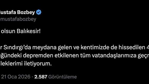 Bursa Büyükşehir Belediye Başkanı Mustafa Bozbey, Balıkesir Sındırgı'da meydana gelen 4.5 büyüklüğündeki deprem sonrası geçmiş olsun mesajı yayımladı; yetkililer olumsuz ihbar olmadığını bildirdi.