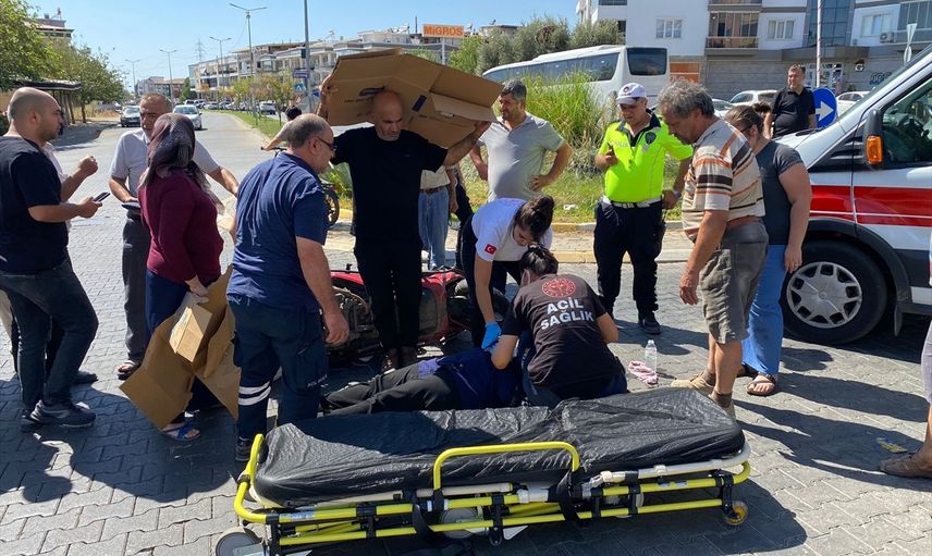 Alınan bilgiye göre, M.E. idaresindeki 09 K 5140 plakalı hafif ticari araç ile İ.Ö. yönetimindeki 09 AFL 851 plakalı motosiklet 61. Sokak'ta çarpıştı.