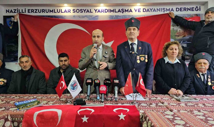Aydın’ın Nazilli ilçesinde, tüm derneklerin katılımıyla Türk bayrağına yapılan çirkin saldırı ortak bir açıklamayla kınandı. Yoğun yağmur nedeniyle açıklama Erzurumlular Dernek Binası içerisinde yapıldı; özellikle doğu bölge illerinin derneklerinin katılımı dikkat çekti.