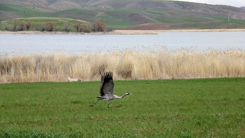 Hafik Gölü çevresinde nesli tehlike altındaki bozkır turnaları görüntülendi. Koruma çalışmaları sürüyor.