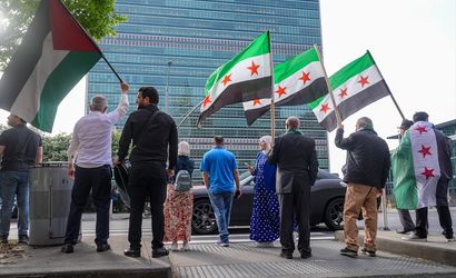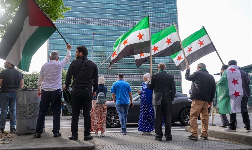 Yeni Suriye bayrağı, New York'taki Birleşmiş Milletler (BM) merkezinde üye ülkelerin bayraklarıyla birlikte göndere çekildi. ABD'de yaşayan Suriyeliler, BM'nin dışında, bayraklar ve alkışlarla törene eşlik etti.