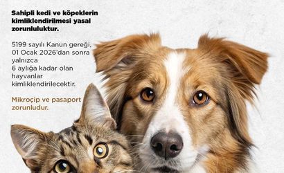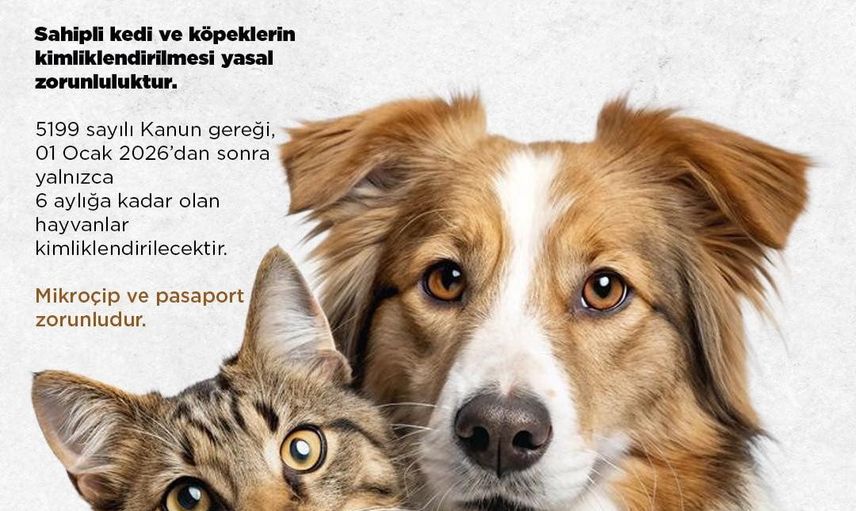 5199 sayılı Hayvanları Koruma Kanunu gereğince, 1 Ocak 2026 tarihinden sonra yalnızca 6 aylığa kadar olan hayvanların kimliklendirileceği; bu tarihten sonra yaşı daha büyük olan sahipli hayvanlar için kimliklendirme işlemi yapılamayacağı ifade edildi.