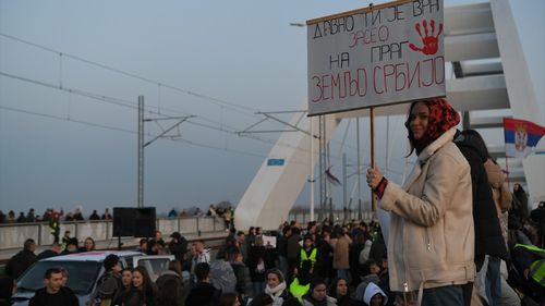 Sırbistan'da tren istasyonunda gerçekleşen kazayı protesto eden binlerce öğrenci, Belgrad'dan Novi Sad'a yürüyüş gerçekleştirdi.