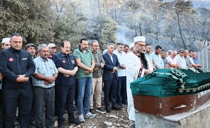 İzmir'in Ödemiş ilçesindeki ormanlık alanda çıkan yangında dün hayatını kaybeden 81 yaşındaki İbrahim Erkan'ın cenazesi toprağa verildi.