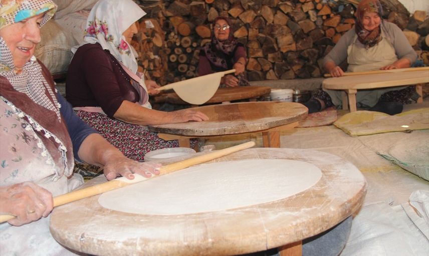 Çorum'un Oğuzlar ilçesinde kadınlar, yüzyıllardır süregelen imece geleneğini yaşatarak kışlık yufka hazırlıklarına başladı. Hazırlanan yufkalar, ilçede kış boyunca tüketiliyor.