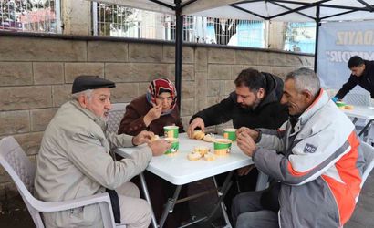 Oltu Belediyesi, halk pazarı girişine kurduğu stantla sıcak çorba ikramında bulunuyor. Belediyenin sosyal tesislerinde hazırlanan çorbalar, sabahın erken saatlerinde tezgâh açan pazarcı esnafı ile pazara gelen vatandaşlara ücretsiz olarak dağıtılıyor.