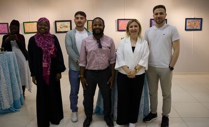 Ondokuz Mayıs Üniversitesinde (OMÜ) yabancı öğrencilerin ebru atölyesi eserleri sergilendi.