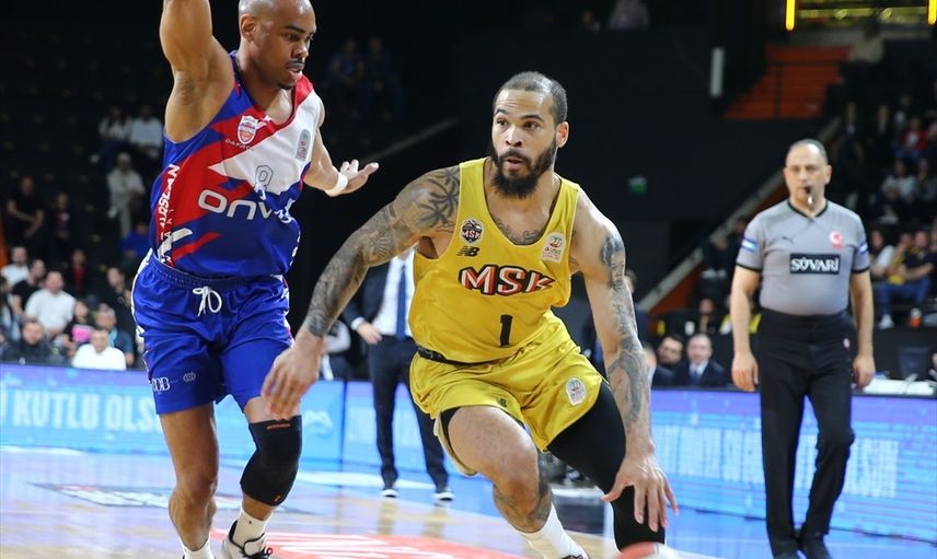 Türkiye Sigorta Basketbol Süper Ligi'nin 24. haftasında Mersinspor ile Onvo Büyükçekmece Basketbol, Mersin'deki Servet Tazegül Spor Salonu'nda karşılaştı. Bir pozisyonda Mersinspor'dan Gabriel Olaseni (sağda), rakibiyle mücadele etti.